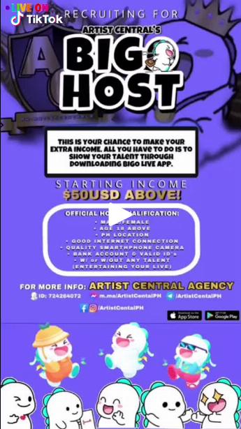 ARTIST CENTRAL is an official Talent Agency affiliated of BIGO LIVE PHILIPPINES. under the named PH-ARTISTCENTRAL2. Together with #BigoLive, we provide a digital space for our Artist to broadcast their talents across entertainment industry.
