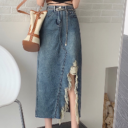 Ripped Denim Skirt