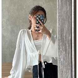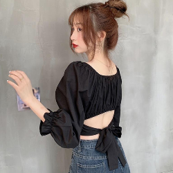 Long Puff Sleeves Cropped Top