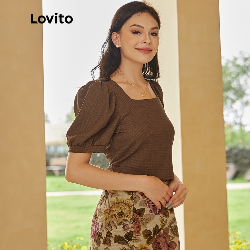 Lovito Square Neck Puff Sleeve