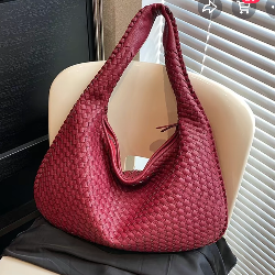 Red woven handbag
